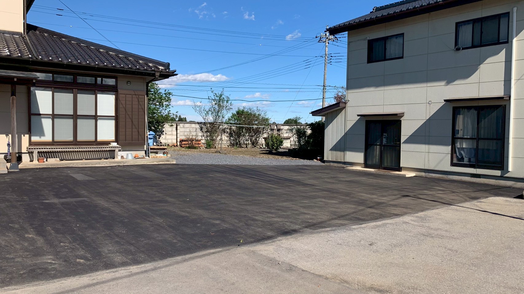 | 作業内容 | 伐採・伐根・剪定工事 :樹木伐採(1式) :樹木伐根(1式) :剪定(2本) アスファルト舗装 :掘削(125㎡) :路床工(125㎡) :路盤工(125㎡) :アスファルト舗装(125㎡) :フィッシャー/回送込み(1台) :アスファルト転圧(1式) 波板新設 :下地新設(1式) :波板張り(1式) :材料費(1式) 廃棄物処分費 :木くず(8㎥)/根っこ(1㎥)/残土(21㎥)/コンクリートガラ(3㎥) 車両費 :廃棄物運搬費(5台) :重機回送費(1往復) 諸経費(1式) |